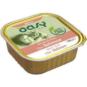 Oasy Cibo Umido per Gatti Adulto - Delizioso Patè al Salmone 100g - Senza Cereali e Altamente Digeribile in Alimenti Cani e Gatti
