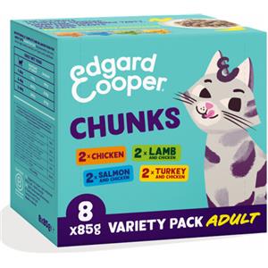 Edgard & Cooper Multipack Bocconcini in Salsa per Gatti Adulti - 8 x 85 gr (Pollo, Salmone, Agnello, Tacchino) - Cibo Umido Naturale e Senza Additivi