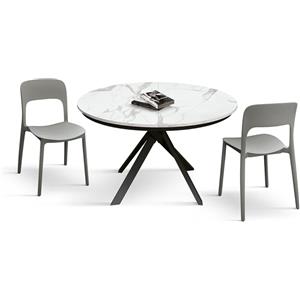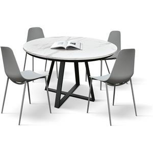 KONTE.DESIGN Tavolo rotondo PANTELLERIA allungabile in legno bianco statuario con gambe in metallo nero - Ø120xH75,3 cm (170x120x75,3 cm aperto)