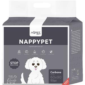 Aqpet Tappetini Igienici Assorbenti al Carbone Attivo 60x90 cm - 50 pz con Strisce Adesive Anti Odore