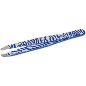 Tecniwork Pinzetta Professionale Zebra Blu in Acciaio Inox con Punta Obliqua - Rimozione Precisa dei Peli