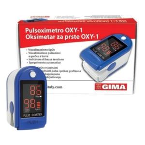 GIMA OXY-1 Pulsossimetro da Dito - Misurazione Saturazione Ossigeno e Frequenza Cardiaca, Compatto, Multilingue, Uso Domestico e Professionale