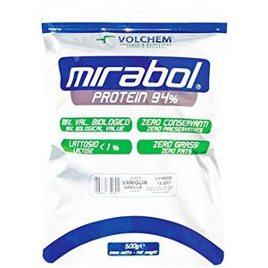 Volchem Mirabol Whey Protein 94% - Integratore Alimentare con 500g di Proteine del Siero del Latte al Gusto Vaniglia, 22% Aminoacidi Ramificati in Integratori e Vitamine