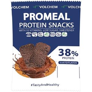 VOLCHEM Promeal Protein Snacks 38% - Snack Proteico con Cioccolato Fondente e 13 Vitamine, Basso Contenuto di Zuccheri in Integratori e Vitamine