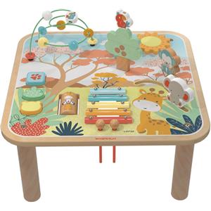 Wood'N'Play Tavolino Multiattività Savana in Legno - Gioco Educativo 18m con Labirinto, Puzzle 3D, Xilofono e Ingranaggi