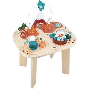 JANOD Tavolino Multiattività Dino - 8 Attività Multisensoriali per Bambini dai 12 Mesi, Legno FSC, Dimensioni 40 x 32 x 52,5 cm