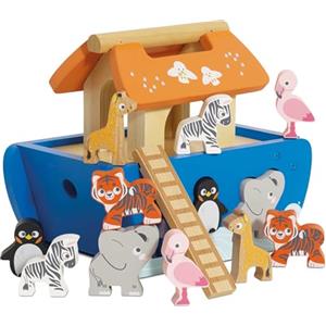 Le Toy Van TV212 - Arca di Noè Gioco Educativo in Legno FSC con 7 Coppie di Animali, Forme ad Incastro e Maniglia per il Trasporto