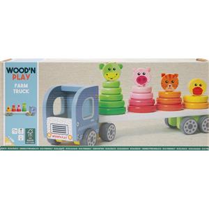 WOOD 'N' PLAY Camioncino Educativo con Anelli Impilabili e Animali Colorati