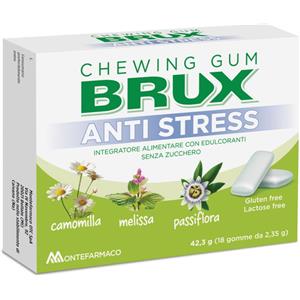 Montefarmaco Brux Antistress Chewing Gum - 18 Gomme con Melissa e Camomilla per Ridurre lo Stress