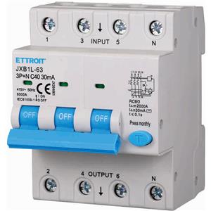 ETTROIT Interruttore Magnetotermico Differenziale 3P N 40A 30mA 380V 6KA - Protezione Magnetica, Termica e Differenziale