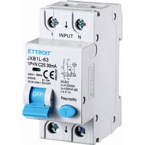 ETTROIT Interruttore Magnetotermico Differenziale 1P N 6A 300mA 220V/240V 6KA - 2 Moduli DIN