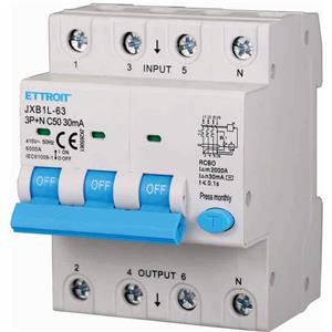 ETTROIT Interruttore Magnetotermico Differenziale 3P N 50A 30mA 380V - Protezione Magnetica, Termica e Differenziale