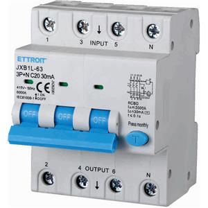 ETTROIT Interruttore Magnetotermico Differenziale 3P N 20A 30mA 6KA 380V - Protezione Magnetica, Termica e Differenziale, 4 Moduli DIN