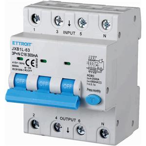 ETTROIT Interruttore Magnetotermico Differenziale 3P N 16A 6KA 300mA 380V - Protezione Magnetica, Termica e Differenziale, 4 Moduli DIN