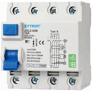 ETTROIT Interruttore Differenziale Puro Tipo B 3P N 16A 30mA 400V IP20