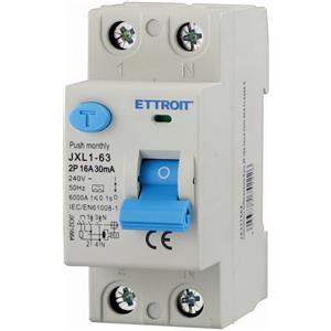 ETTROIT Interruttore Differenziale Puro Tipo A 2P 16A 30mA 220V 6KA IP20