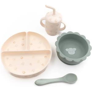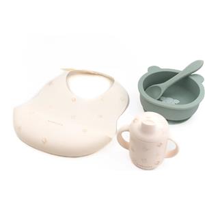 Bamboom First Meal Set in Silicone - Set Completo con Ventosa, Bavaglino, Cucchiaio e Bicchiere con Beccuccio per Bambini