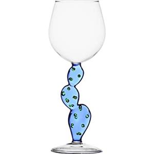 Ichendorf Calice Cactus Azzurro in Vetro Borosilicato - 35 cl, Fatto a Mano, Design Unico