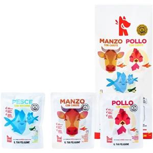Real Bowl Pappa Fresca per Cani - Tre Gusti Manzo, Pollo e Pesce, Senza Cereali, Sacco 14 Buste da 150 gr
