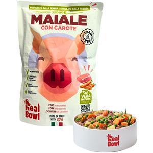 Real Bowl Alimento Umido Monoproteico per Cani con Maiale e Carote - 400g, Senza Cereali e Conservanti