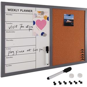 Bakaji Lavagna Magnetica e Bacheca Memo Combinata 60x40 cm con Cornice in Legno, Set di Gessetti, Magneti e Puntine - Design Moderno per Casa e Ufficio