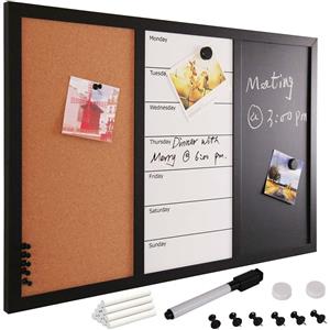 Bakaji Lavagna Magnetica 3in1 Bianca e Nera con Bacheca in Sughero 60x40cm, Cornice in Legno, Set Gessetti e Pennarello Cancellabile