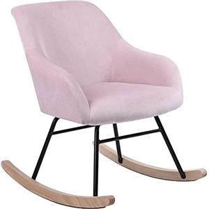 BAKAJI Poltrona a Dondolo Relax Imbottita in Tessuto e Legno, Design Slitta Scandinavo, Rosa