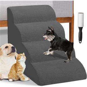 BAKAJI Scala per Animali Domestici Grigio con 4 Gradini, Rullo Rimuovipeli e Rivestimento Sfoderabile in Tessuto a Coste