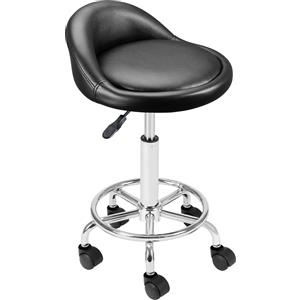 BAKAJI Sgabello con Ruote Nero - Seduta Imbottita in Ecopelle, Schienale Basso, Base in Acciaio Girevole a 360°, Altezza Regolabile, Ideale per Estetista e Ristoranti