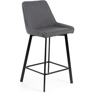 E-STYLO Sgabello da cucina con poggiapiedi, seduta e schienale imbottiti in tessuto grigio scuro, gambe in metallo nere, dimensioni 50x44x94 cm