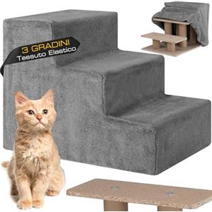 BAKAJI Scala per Animali Domestici con 3 Gradini, Rivestimento Sfoderabile in Peluche e Imbottitura ad Alta Densità, Rampa per Gatti e Cani Anziani - 45,5 x 36 x 34 cm (Marrone) in Accessori e Giochi Cani e Gatti