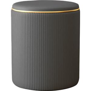 Shally Dogan Pouf Contenitore Ecopelle Grigio con Decoro Oro - Poggiapiedi e Seduta Imbottita 35x45cm