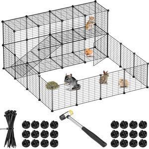 BAKAJI Recinto Personalizzabile per Animali di Piccola Taglia in Metallo - Componibile per Criceti, Conigli e Porcellini d'India (110 × 75 × 39 cm)