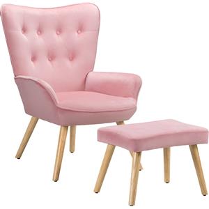 BAKAJI Poltrona con Sgabello in Velluto Rosa, Design Moderno con Braccioli Alti e Pouf Poggiapiedi
