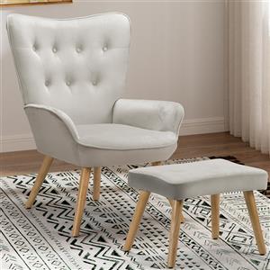 BAKAJI Poltrona con Sgabello in Velluto Grigio, Design Moderno e Braccioli Alti per Relax