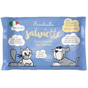 Ferribiella Salviette Pulizia Orecchie per Cani e Gatti - 20 PZ, Morbido Tessuto, Formula Naturale