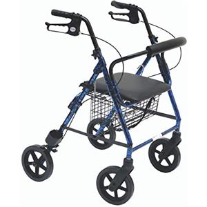 Movi Rolly Alu - Deambulatore in alluminio con 4 ruote piroettanti, sedile e porta bastone