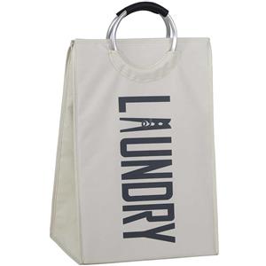 BAKAJI Cesto Biancheria Sporca Pieghevole in Tessuto Oxford con Manici in Metallo - Dimensioni 38 x 28 x 68 cm (Panna)