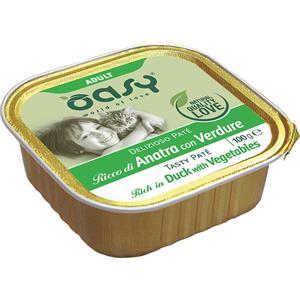 Oasy Delizioso Paté per Gatti Adulto - Anatra con Verdure, Vaschetta da 100 gr, Alimento Completo e Naturale