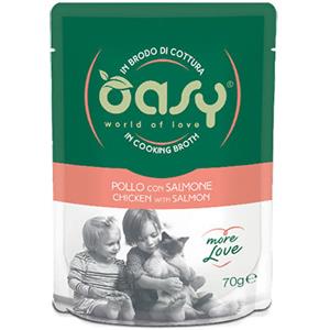 Oasy More Love Cibo Umido per Gatti Pollo con Salmone Rosa 70 gr - Alimento Naturale Senza Coloranti e Conservanti
