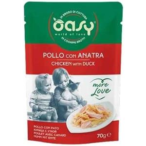 Oasy More Love Cibo Umido per Gatti Adulti con Pollo e Anatra in Brodo di Cottura - 70g