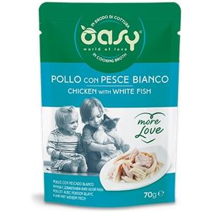 Oasy More Love Cibo Umido per Gatti - Pollo con Pesce Bianco in Brodo di Cottura - 70 g