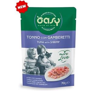 Oasy More Love - Cibo Umido per Gatti con Tonno e Gamberetti in Brodo di Cottura - 70g