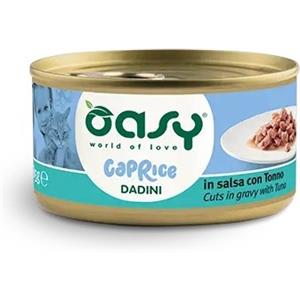 Oasy Cat Caprice Dadini in Salsa con Tonno - Alimento Umido Completo per Gatti Adulti - Lattina da 85 Gr