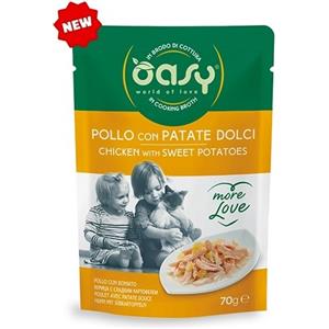 Oasy More Love - Pollo con Patate Dolci in Brodo di Cottura per Gatti Adulti - 70g