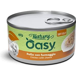 Oasy Natury Soft Jelly Pollo con Formaggio - Cibo Umido per Gatti Adulti in Lattina da 85 g