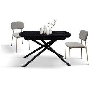 E-STYLO Tavolo Allungabile in Ceramica Marmo Nero con Gambe a Stella in Metallo Nero Opaco - 90x160/240 cm
