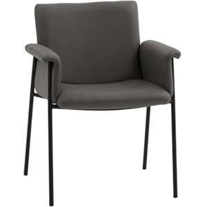 KONTE.DESIGN Set di 4 Sedie CANCÚN in Similpelle Grigio con Gambe in Metallo Nero e Braccioli