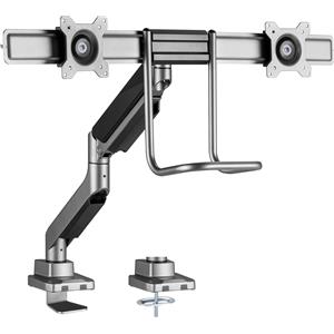Value Supporto Doppio Monitor da Scrivania con Morsa, Nero e Grigio, Regolabile in Altezza, VESA 75x75/100x100, Capacità Fino a 18 kg