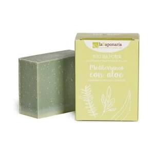 La Saponaria Sapone Mediterraneo con Aloe - 100g, Detergente Naturale Emolliente e Purificante per Pelli Impure